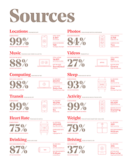 Reporter is a tool created and inspired by Nicolas Felton. Feltron is well-known artist and early self-tracker. For 10 years he tracked his life and created a visual annual report each year. He created his last annual report in 2014 and throughout the process you can clearly see the evolution of tracking and the ability of an artist to conceptualize and think through that data. It’s note-worthy to see his ability to establish a completeness score for different data points like photos, weight, driving, location, and computer usage.