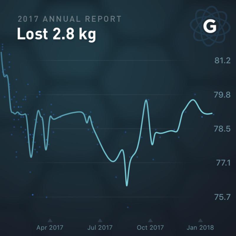 Checking my scale, it turns out I lost 2.8 kilos (6.1 pounds) in 2017.