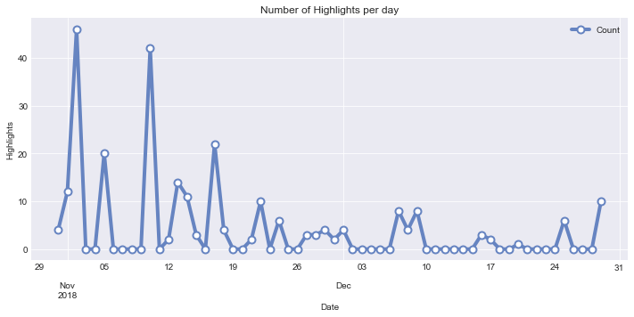 Lastly, since Instaper allows highlighting article, I’m able to see how my highlighting habits trend day to day too: