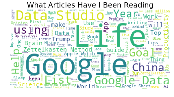 I’m still try to sort out what this data means and what kind of data story it can tell. It’s clear that I continue to read regularly about China where I spend at least part of the year. This year also saw the rise of Google Data Studio in my reading list and I expect to have much to share on that tool in 2019 as well, since I actively writing and creativing videos on using Google Data Studio for tracking and visualizing a life.