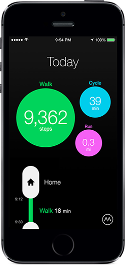 Moves is an app for your smart phone that lets you track your location and movements. Whether you have an Apple or Android device, Moves tracks your GPS in the background. It then translates this into where you are and how you go there (whether walking, running, cycling, car, etc). Moves create an overall picture of where, how much time and distances you moved about during the day.