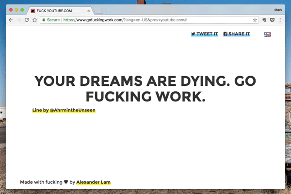 I recently switched to “Go Fucking Work.” It provides many of the same features, but in view of the fact that my goal changed to completely eliminating Youtube and Facebook during certain days and hours, this service made a bit more sense.