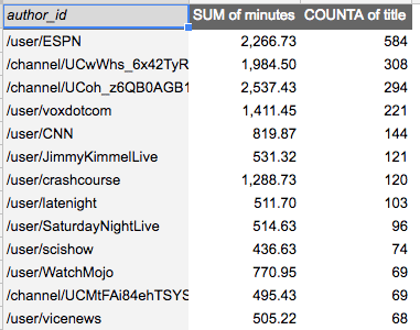 As you can see, I’ve gone ahead and converted seconds to minutes, added a column for when I scrapped the data and tagged the month watched too. In the case of videos before I started tracking, I added a generic pre-XXX date. This allows me to keep some aggregate stats going forward.