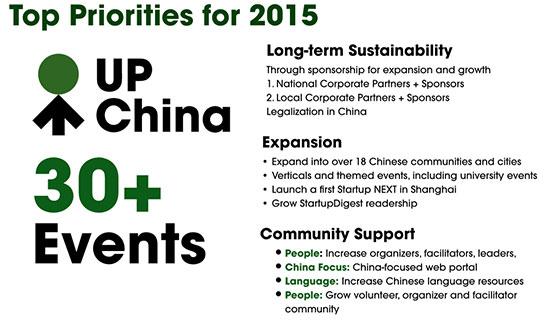Let’s first look at my role with UP Global in China and how all this craziness got started. After we will then examine our key initiatives, programs and communities for 2015.