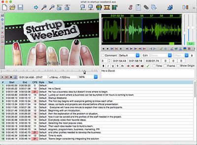 - Aegisub: an open source program for transcribing a syncing subtitles file (SRT) for a video’s audio