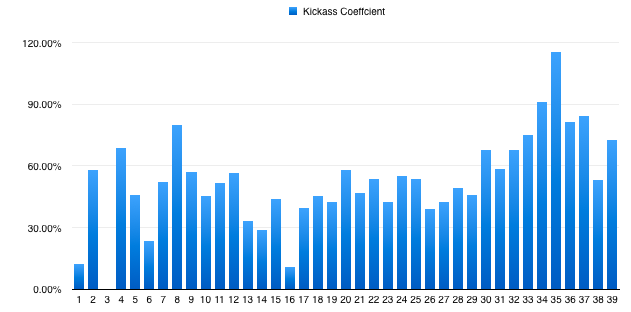 I combine these two numbers to determine my weekly kickass time usage ratio. In essense, I divide my total computer time by my conscious time tracking.