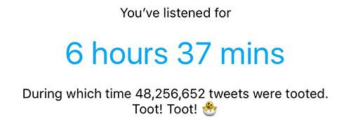 But for a self-tracker like me, this data point is enough. Using the total number, I can subtract week to week to get my weekly count. I can look at this number month to month to get my monthly count. And as my usage continues, I can eventually extrapolate and get my year podcast listening statistic.