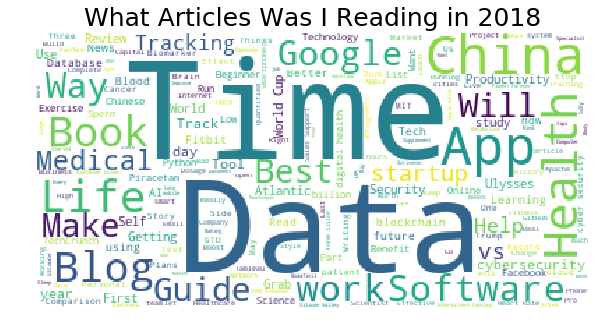 I’m still try to sort out what this data means and what kind of data story it can tell. It’s clear that I continue to read regularly about China where I spend at least part of the year. This year also saw the rise of Google Data Studio in my reading list and I expect to have much to share on that tool in 2019 as well, since I actively writing and creativing videos on using Google Data Studio for tracking and visualizing a life.