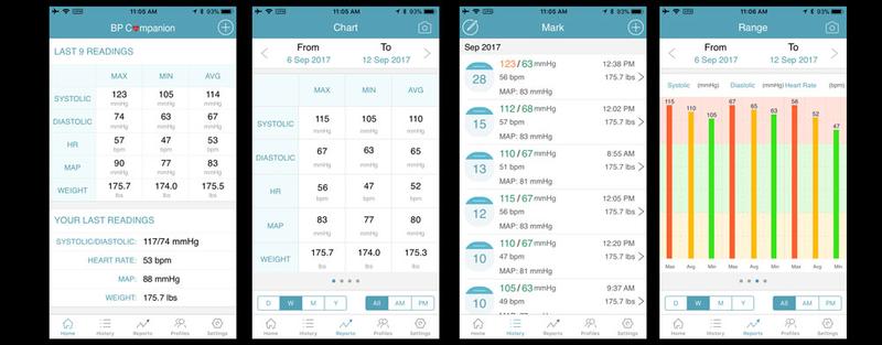 After trying a few options, I ended up using “BP Companion,” which provided all of the features I need. It’s highly functional and reliable app that does exactly what I need. The free version worked fine, and the premium one removed the ads and added an export option.