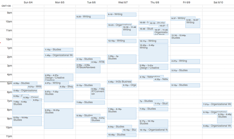 While obviously this might appear somewhat confusing at first glance, in reality it gives me an accurate representation of my productive life. In general I work in focused blocks that one might call “Deep Work” followed by spells of reading, studies and untracked break time. All in all, it’s a good indication of how my time went in a week.