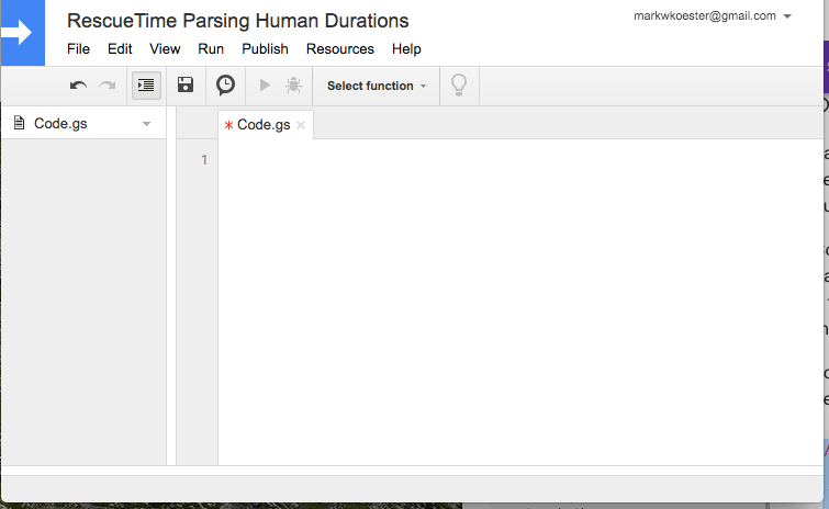 First, go into the menu under Tools and select “Script Editor.” This should open up a new browser tab that looks like this: