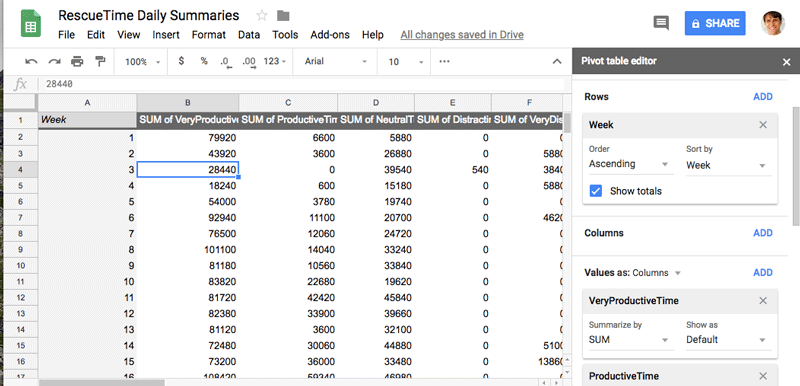 If you’ve just started collecting data into Google Sheets from RescueTime, there are a couple of initial steps you should do first.