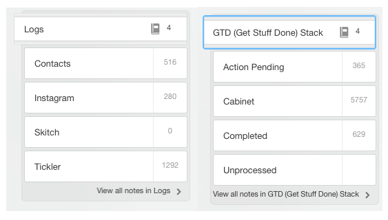 As background, my main notebooks in Evernote are: Personal Notebook (personal writings), Tickler (articles to read later), Cabinet (my digital file cabinet where most things are stored) and Contacts.