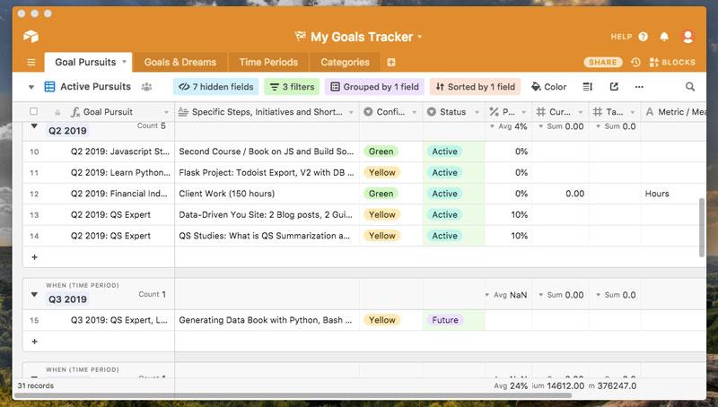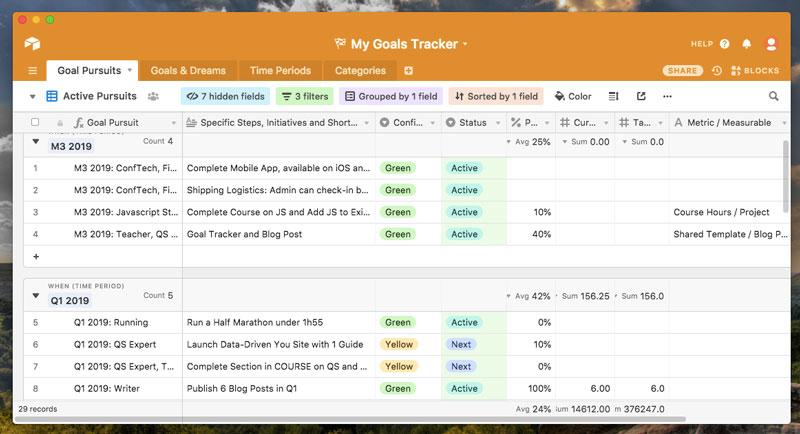 Goal Tracker for AirTable is designed around helping you focus on goal pursuits.