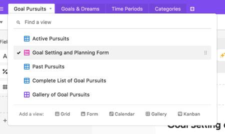 In Goal Tracker for Airtable, I’ve provided a separate view for past goal pursuits: