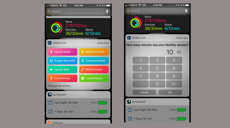 (NOTE: Creating a Custom Workflow in Workflow on iOS is quite simple. The easiest way is to clone an existing one for workouts and modify the text and workout type logged.)