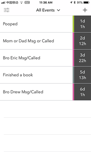 Over the past month of poop tracking, I used a simple yet effective self-tracking tool called Hindsight. Hindsight is an iOS and Apple Watch app that lets you log when anything happened in the past and then provides a timer telling you how long since that event occurred.