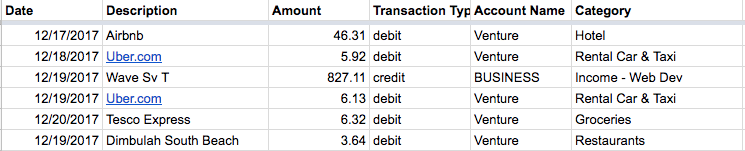 As you can see it includes the date, description, amount, account type, transaction type and category.