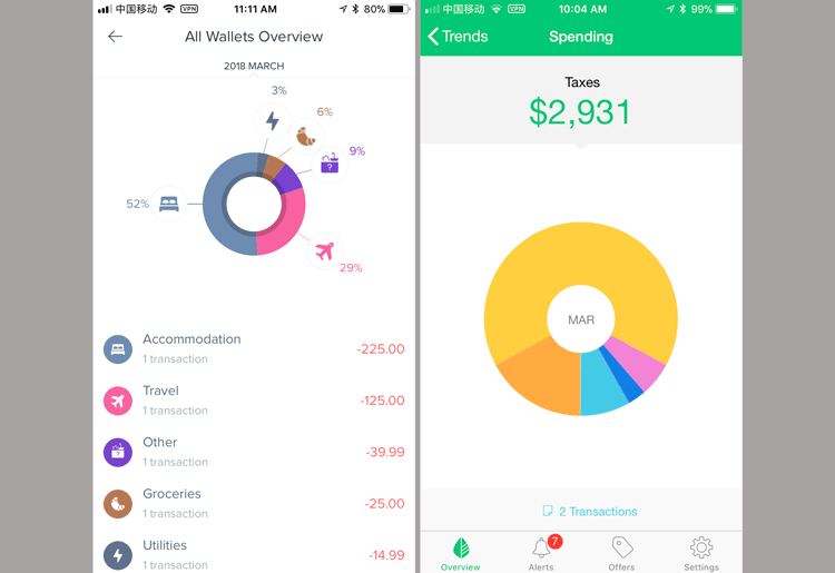 Here are two examples from Mint and Spendee: