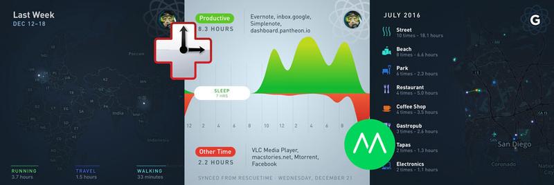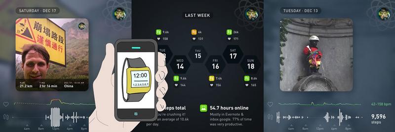 Available on iOS and Web with a strong integration with the Apple Watch, installation requires you to integrate data from RescueTime, Moves, your phone and a few other options. After that, Gyroscope does the rest to create great looking and actionable data visualizations.