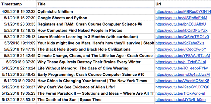 Overall, this python scraper is a great way to extract your youtube history. There are a few caveats worth mentioning.