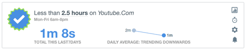 While my original goal was less than 2.5 hours a week, it’s clear that my mind doesn’t even think about using Youtube on the computer anymore, and my usage is trending to less than a minute a week!